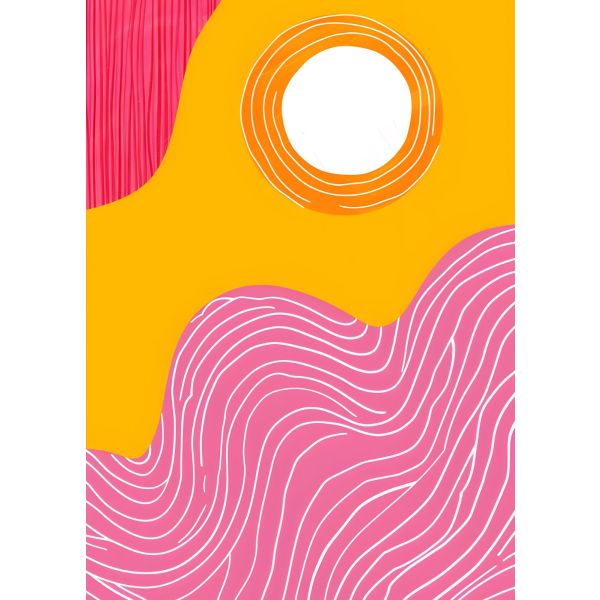 This poster features a vibrant abstract design of the sun and waves, enhanced by bold lines and contrasting colors. Perfect for adding a modern touch to any interior space. The product contains a single poster only.