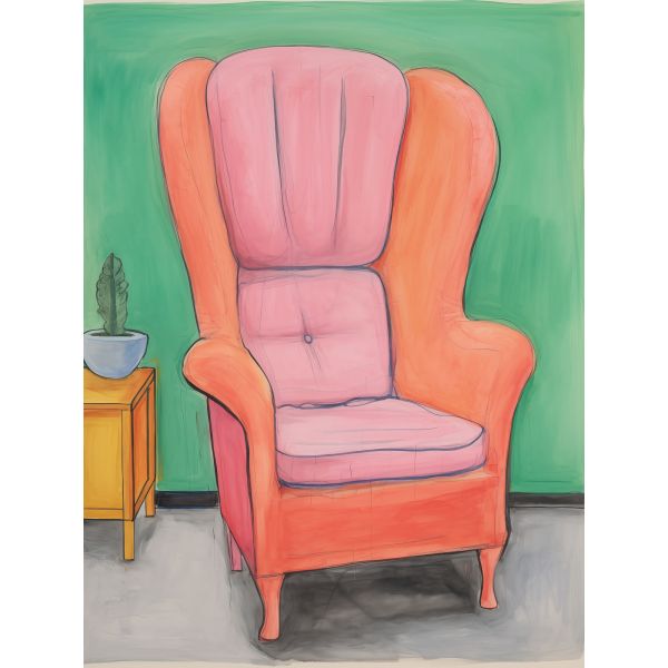 This poster features a vibrant artwork of an armchair, perfect for adding a touch of color to any room. The combination of pink and green creates a striking contrast. Product contains a single poster only.