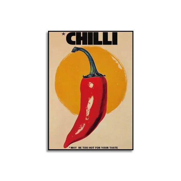 This vibrant poster features a striking image of a red chilli against a bold yellow background. The text reads, 'CHILLI', with a note below, '*MAY BE TOO HOT FOR YOUR TASTE'. It's a perfect choice for adding a spicy touch to your decor. Product contains a single poster only.