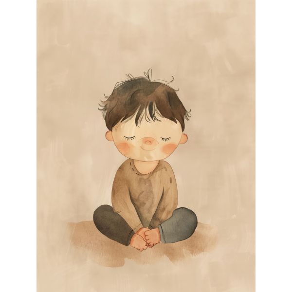 This charming poster features a serene illustration of a child sitting with eyes gently closed, conveying a sense of calm and innocence. Perfect to adorn a child's room, this artwork adds warmth and tenderness to any space. Let this endearing piece bring a sense of peace to your home. Product contains a single poster only.