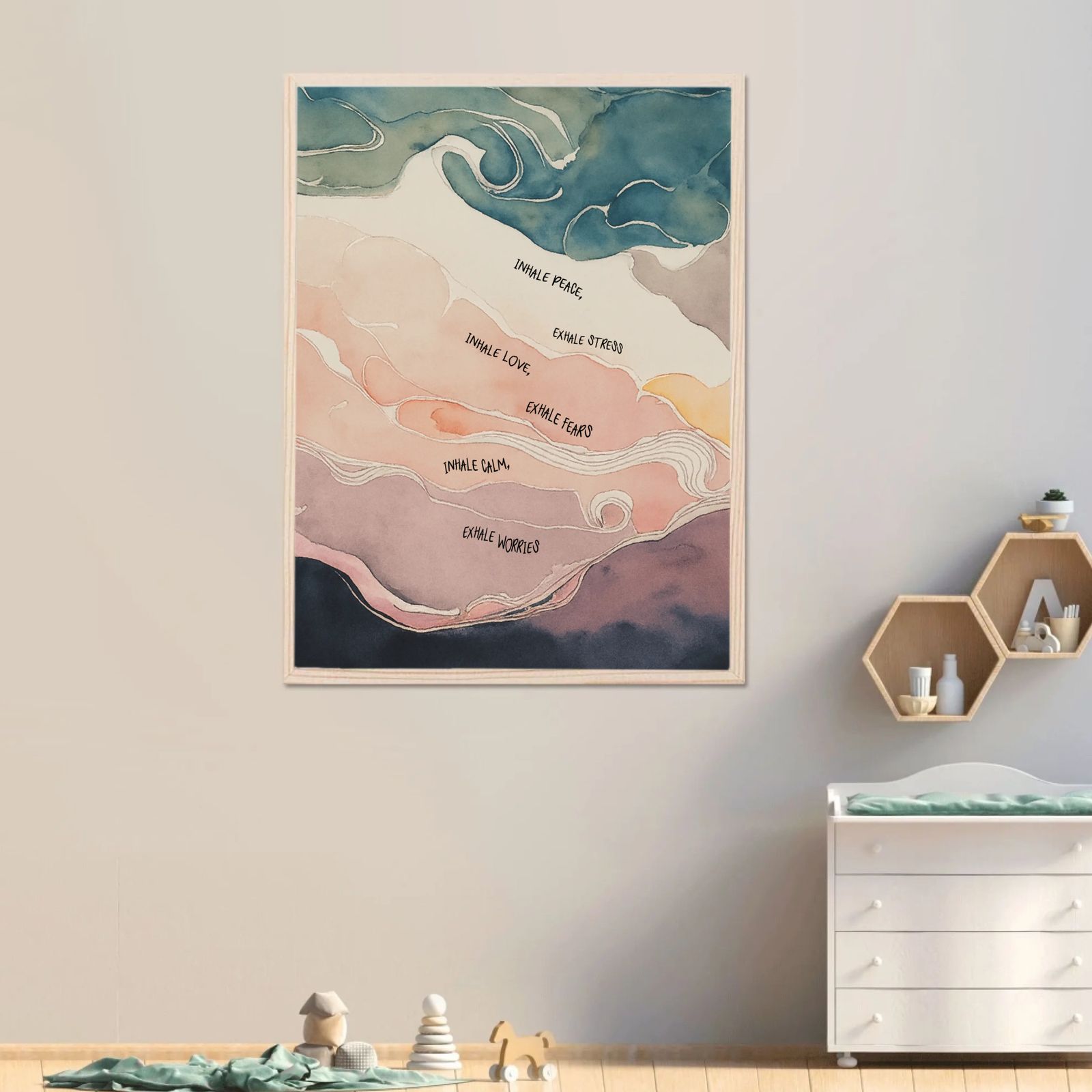Our watercolor posters can be customized with names and are available in various motifs, from animals and flowers to excavators. These posters are sold individually and in sets of three, making them ideal for creating cohesive wall art. The soft, flowing colors create a harmonious and soothing atmosphere in any room, perfect for children's rooms or cozy corners at home.